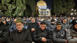 أدى آلاف الفلسطينيين صلاتي العشاء والتراويح في رحاب المسجد الأقصى المبارك، رغم قيود وتضييقات الاحتلال الإسرائيلي، ليلة الجمعة الثالثة من شهر رمضان الفضيل.