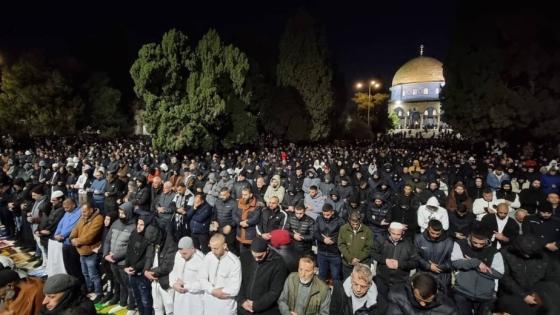 أدى أكثر من 100 ألف شخص صلاتي العشاء والتراويح، في رحاب المسجد الأقصى المبارك بمدينة القدس المحتلة، رغم قيود وتضييقات الاحتلال الإسرائيلي.