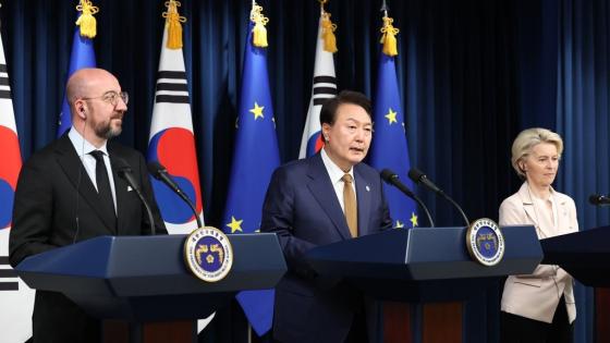 اتفق رئيس كوريا الجنوبية يون سوك يول، اليوم، وأورسولا فون دير لاين رئيسة المفوضية الأوروبية، وشارل ميشيل رئيس المجلس الأوروبي على تعزيز التعاون في مجال المناخ والصحة والقضايا الرقمية.