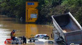 أنجيلا ميركل خلال زيارة لها بالمنطقة المتضررة من كارثة الفيضانات غرب ألمانيا