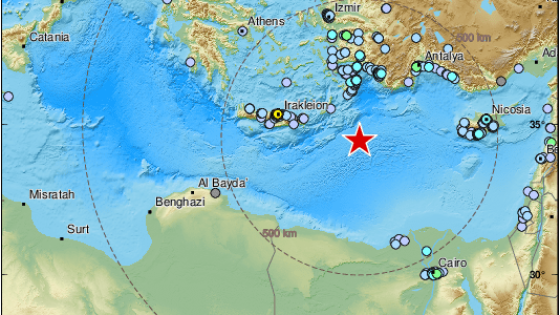 أفاد المركز الأوروبي لرصد الزلازل بأن زلزالا بقوة 6.4 درجة هز البحر الأبيض المتوسط، في حين أفادت وسائل إعلام بأن سكان مصر ولبنان شعروا بالهزة. وأشار المركز إلى أن الهزة وقعت على بعد 219 كيلومترا من